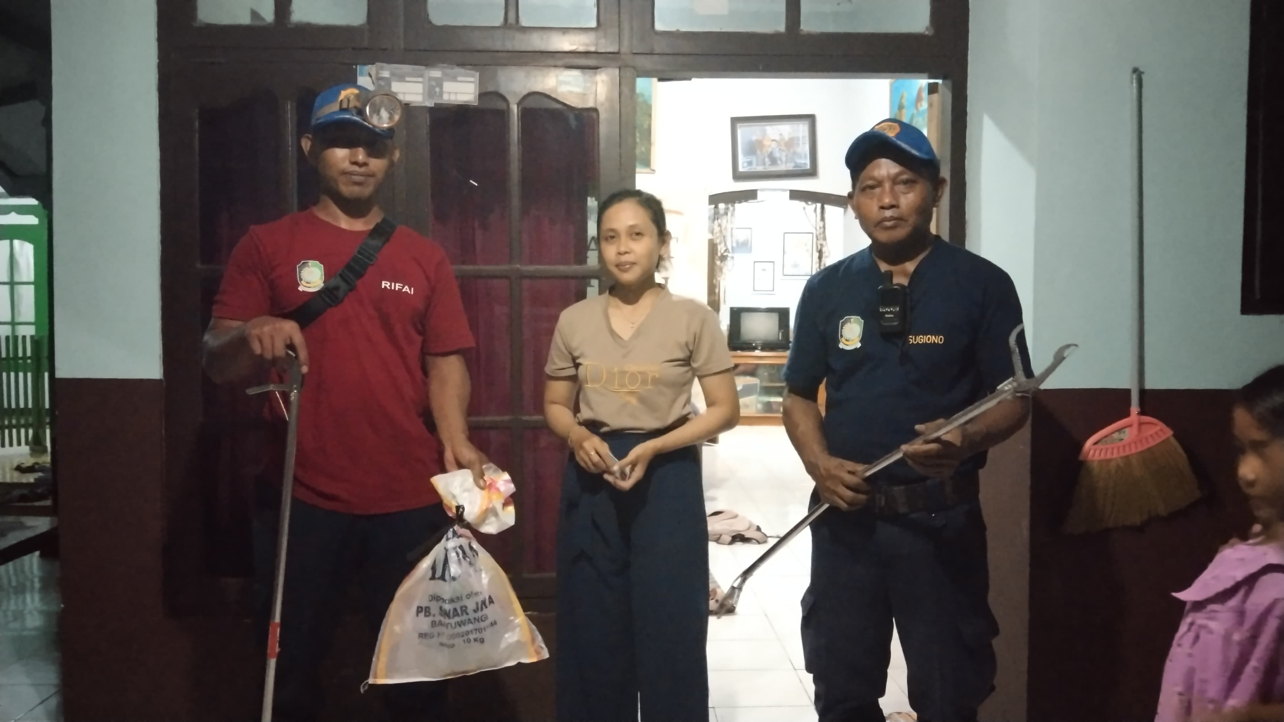Tak lama berselang, laporan diterima petugas pukul 18.15 WIB. Tim rescue yang dipimpin oleh personel sektor Bangorejo langsung menyiapkan peralatan seperti senter, sarung tangan, penjepit, pengait, serta mobil rescue carry, kemudian berangkat menuju lokasi pukul 18.20 WIB.