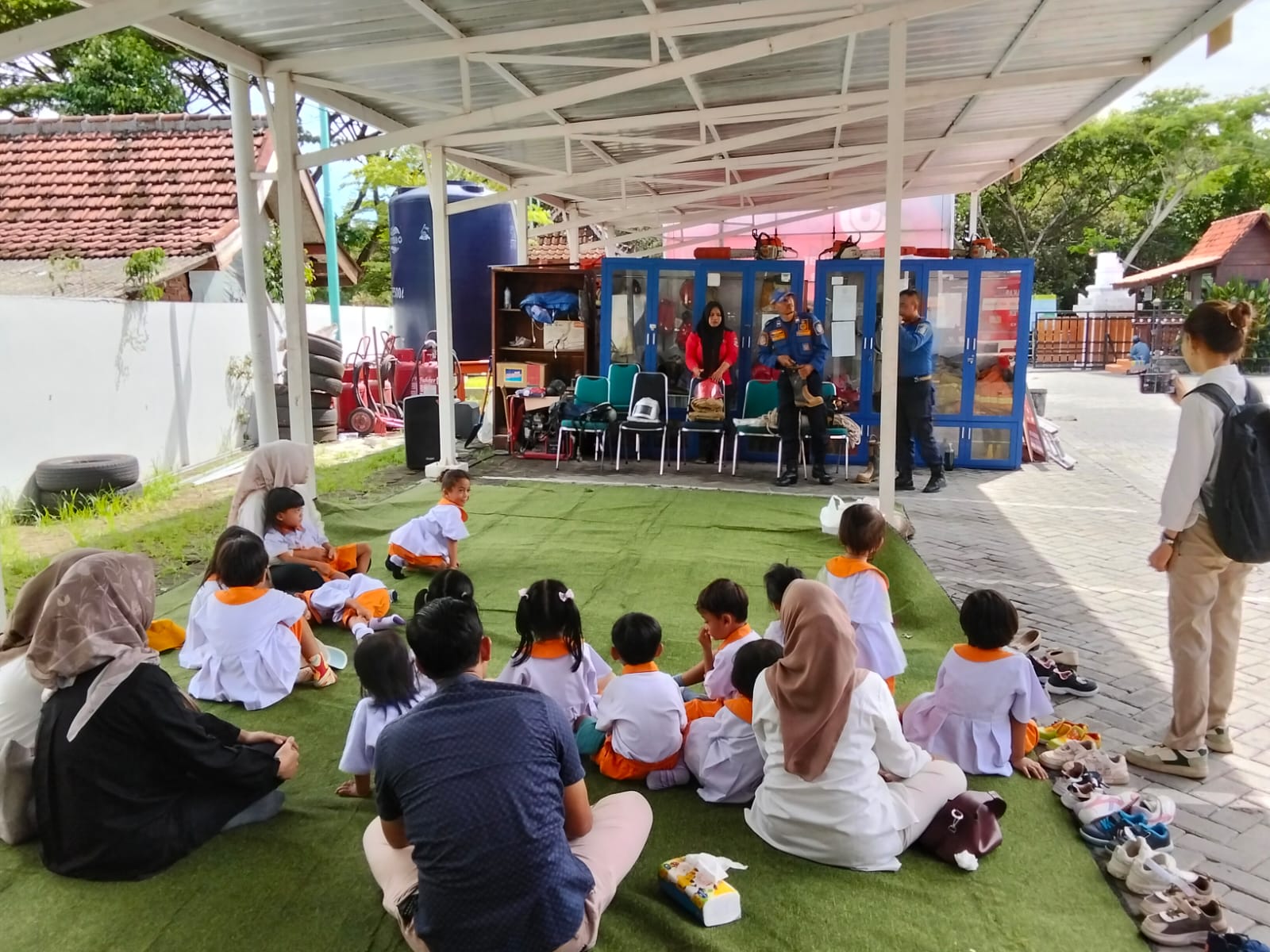 Dalam sesi pertama, petugas Damkar memperkenalkan berbagai peralatan yang digunakan dalam penanganan kebakaran, mulai dari helm, pakaian pelindung, selang pemadam, hingga alat bantu pernapasan. Anak-anak terlihat antusias saat petugas menjelaskan fungsi masing-masing alat dengan bahasa yang mudah dipahami.