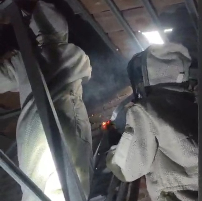 Sesampainya di lokasi, petugas langsung melakukan observasi dan menemukan sarang lebah berukuran cukup besar menempel di bagian atap plafon rumah. Kondisi tersebut dinilai cukup membahayakan, mengingat rumah berada di kawasan padat penduduk.