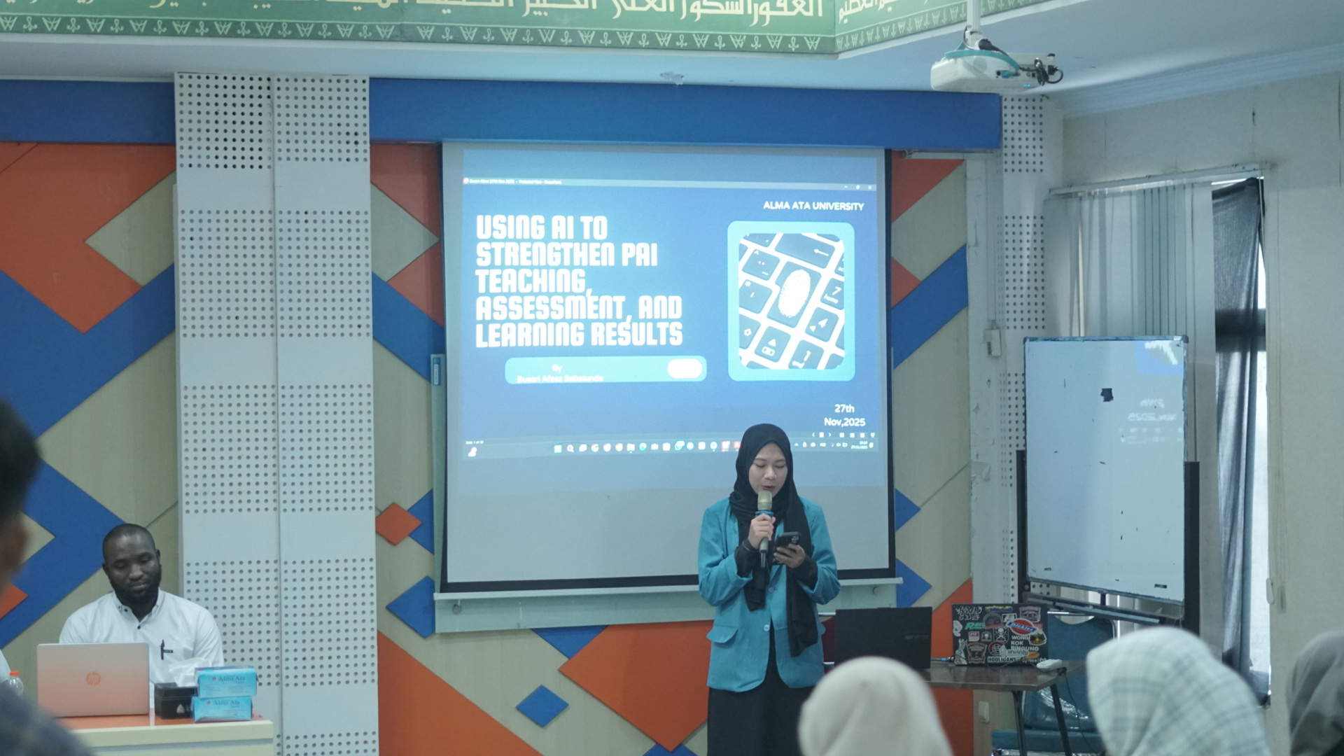 Dari pihak UAA, Busari Afeez B dan Nur Fadilah Tanjung menyajikan materi tentang tantangan Pendidikan Agama Islam di era kecerdasan buatan. Mereka menyoroti perlunya transformasi kurikulum, peningkatan literasi digital, serta penguatan etika dalam pembelajaran berbasis AI.