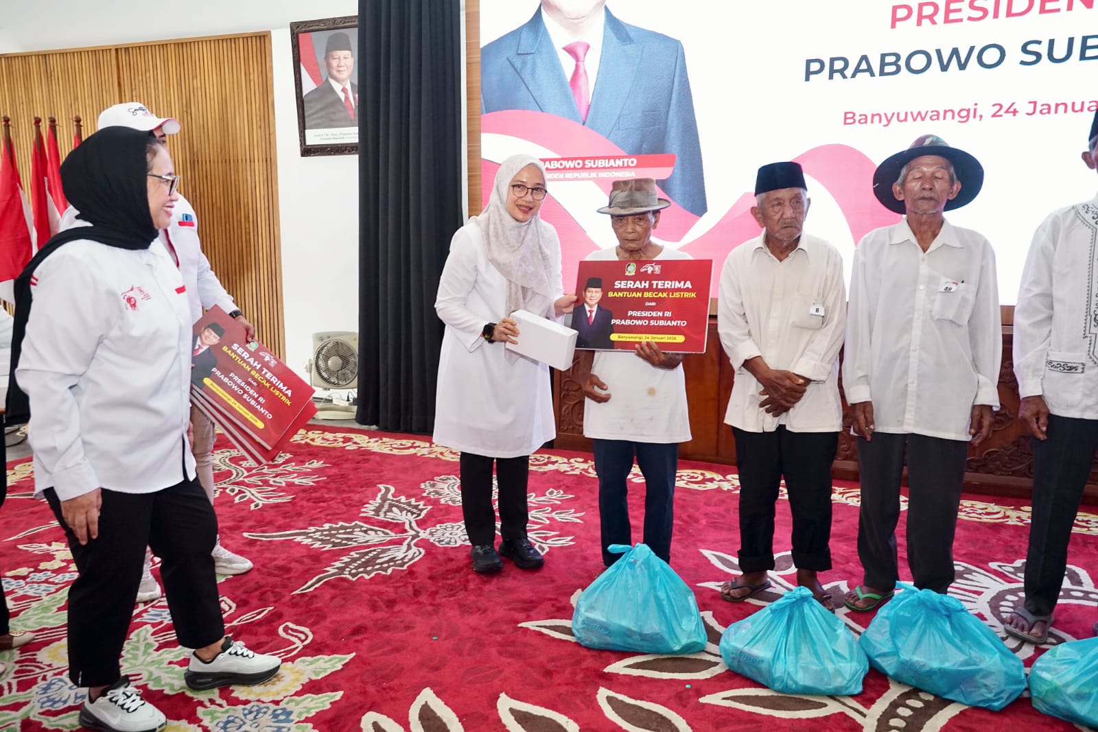 BanyuwangiNews.com – Senyum bahagia campur haru tampak di wajah para pengemudi becak lanjut usia di Banyuwangi. Sebanyak 200 unit becak listrik bantuan Presiden Prabowo Subianto resmi diserahkan di Pendopo Sabha Swagata Blambangan, Sabtu (24/1/2026).