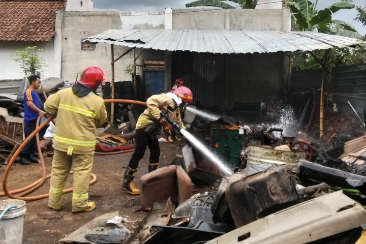 Tempat Usaha Besi Tua di Boyolangu Terbakar, Damkar Banyuwangi Bergerak Cepat Padamkan Api.
