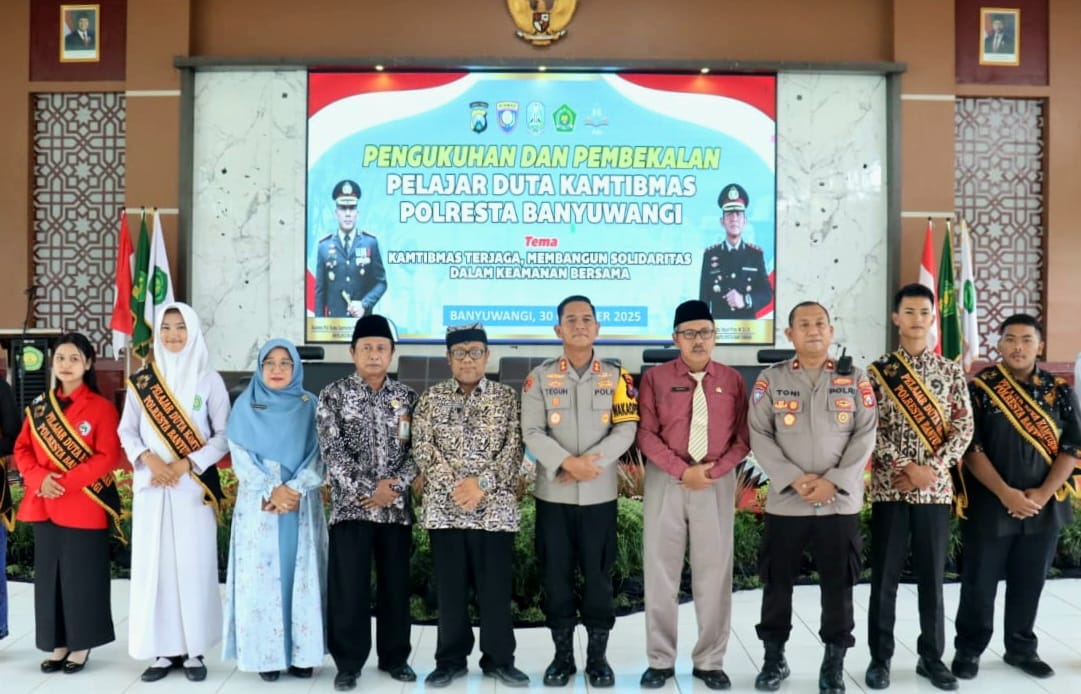 BanyuwangiNews.com– Polresta Banyuwangi terus menguatkan kolaborasi dengan kalangan pelajar dalam upaya menciptakan keamanan dan ketertiban masyarakat (kamtibmas) yang berkelanjutan. Sebanyak 280 pelajar dari berbagai sekolah di Banyuwangi resmi dikukuhkan sebagai Duta Kamtibmas 2025, Kamis (30/10/2025), di halaman MAN 2 Genteng.