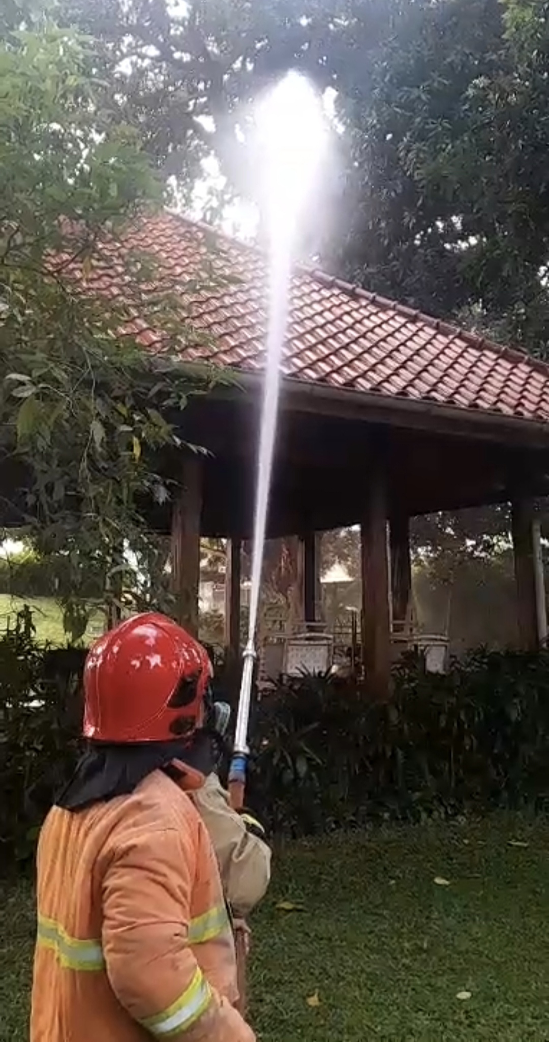 Damkar Banyuwangi Sigap Atasi Ulat Bulu di Pendopo Banyuwangi