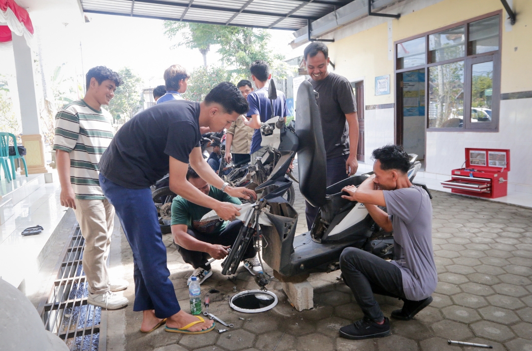 Sejak hari pertama, para peserta sudah diajak untuk mengenal berbagai peralatan bengkel serta memahami teknik dasar servis kendaraan bermotor. “Kami tidak hanya mengajarkan perbengkelan dasar, tapi juga teknologi terbaru seperti servis motor injeksi dan teknik scanning dengan laptop,” terang instruktur pelatihan, Ismu (36). Ia menambahkan, pada hari-hari berikutnya, peserta langsung terjun ke praktik bongkar pasang mesin motor. “Mereka juga akan diuji dengan memperbaiki motor milik warga sekitar sebagai penutup pelatihan,” imbuhnya.
