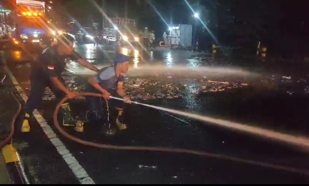 Kejadian bermula ketika sebuah mobil pikap mengalami kecelakaan ringan dan muatan ikannya jatuh berserakan di tengah jalan. Kondisi itu menyebabkan permukaan jalan menjadi licin dan menimbulkan potensi bahaya bagi pengendara yang melintas.