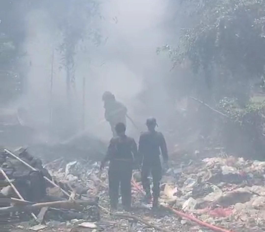 KEBAKARAN SAMPAH DI MOJOPANGGUNG SEMPAT MENGANCAM RUMAH WARGA, DAMKARMAT BANYUWANGI BERHASIL PADAMKAN API DALAM WAKTU SINGKAT