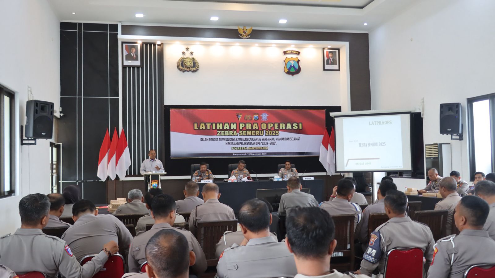 BanyuwangiNews.com - Dalam rangka meningkatkan keselamatan dan ketertiban berlalu lintas, Polresta Banyuwangi menggelar Latihan Pra Operasi (Latpraops) “Zebra Semeru 2025” di Rupatama Mapolresta Banyuwangi, Kamis (13/11/2025).