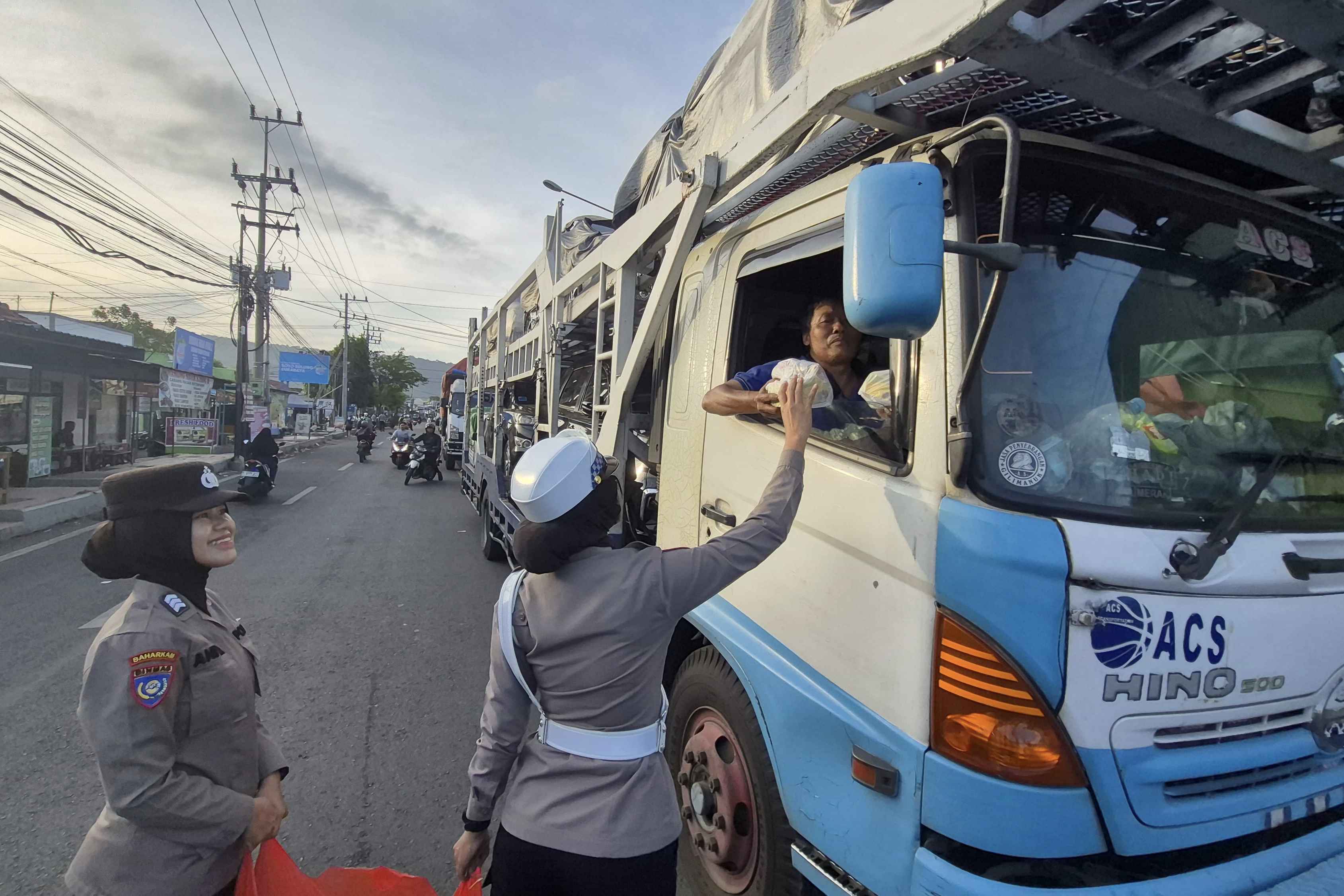 “Kami berinisiatif membagikan makanan ringan dan air mineral kepada para pengendara. Ini adalah bentuk empati kami atas situasi tidak nyaman yang mereka alami,” ujarnya.