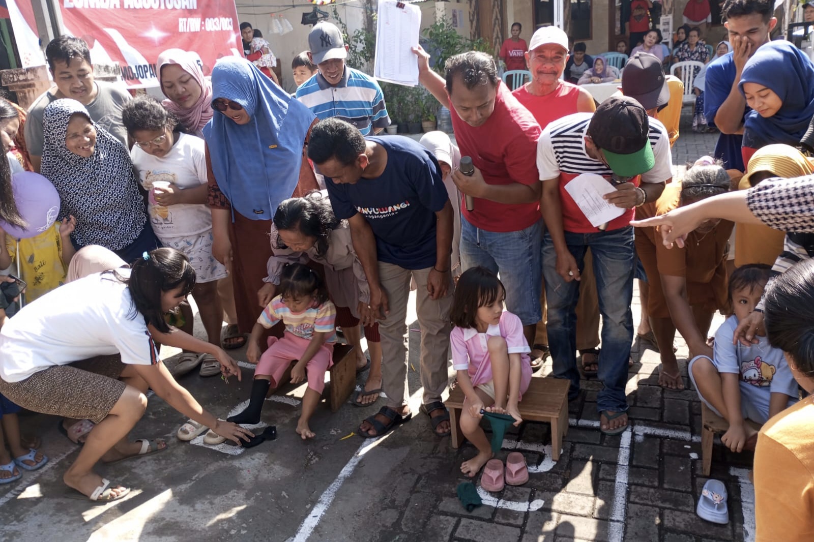 BanyuwangiNews.com - Kemeriahan dalam rangka memperingati Hari Ulang Tahun ke - 80 Republik Indonesia begitu terasa terlihat di Lingkungan Cungking RT. 03 RW. 03 Kelurahan Mojopanggung. Seluruh warga, mulai dari anak - anak hingga para orang tua, berbaur dan berkumpul menjadi satu untuk mengikuti serangkaian lomba Agustusan dengan penuh ceria.