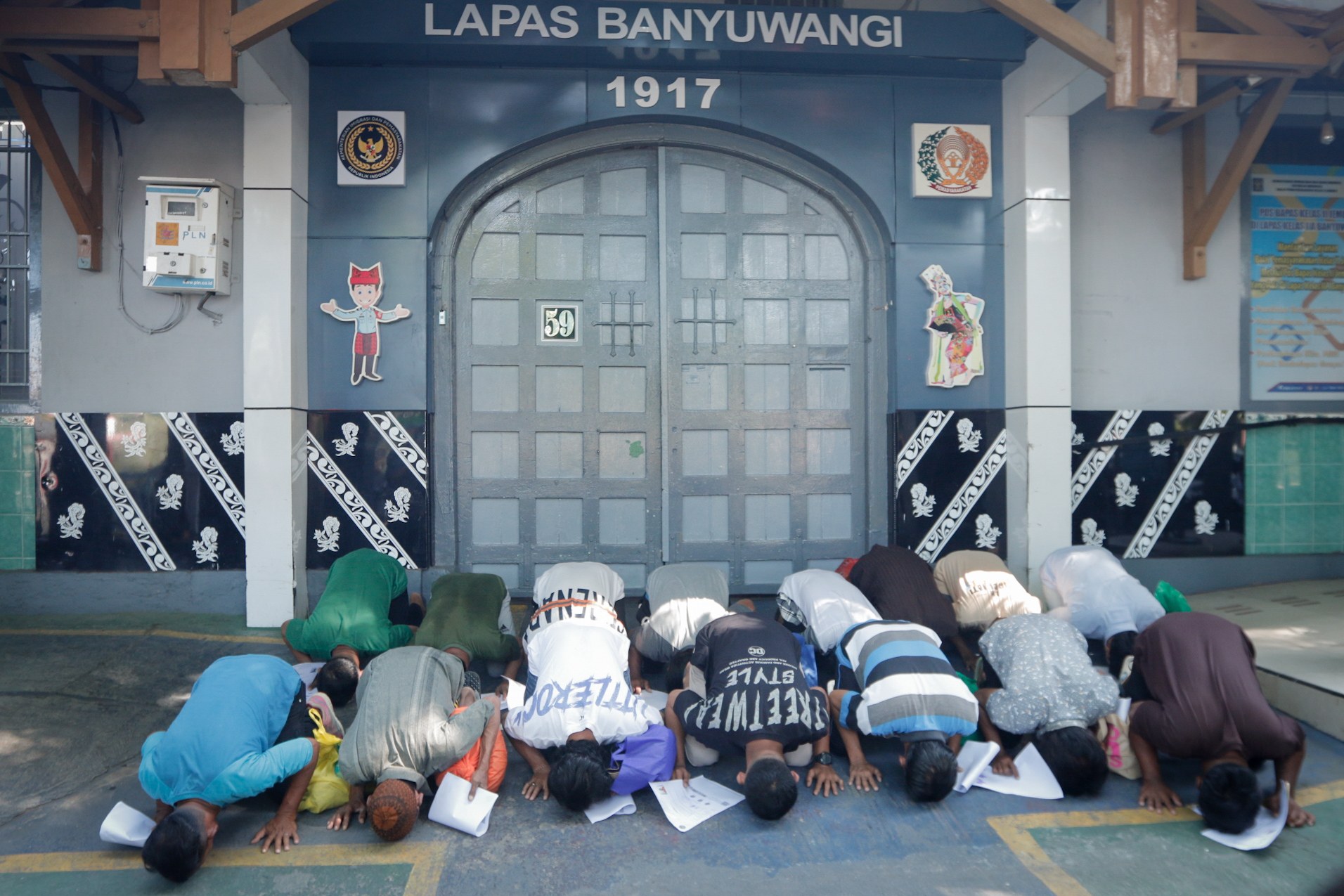 Sujud Syukur 13 Napi Banyuwangi Usai Hirup Udara Bebas di Hari Kemerdekaan