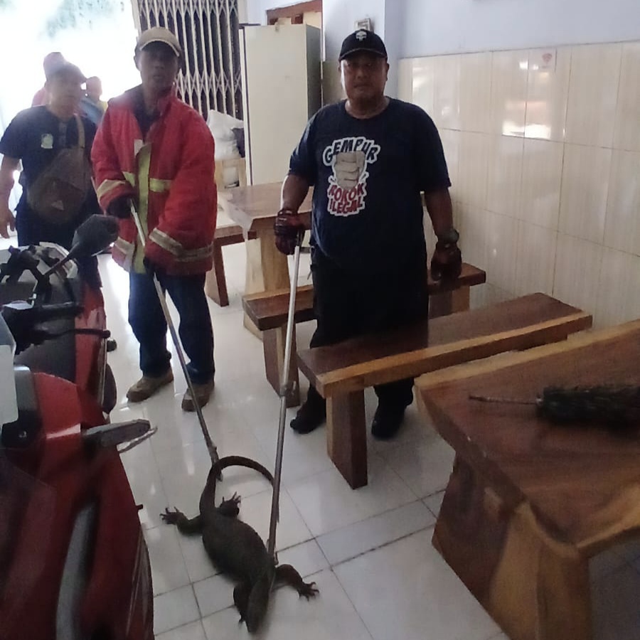 Tim Damkar Banyuwangi Evakuasi Biawak dari Tempat Kerja Warga