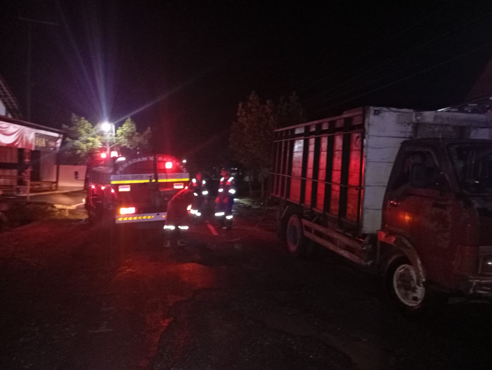 Truk Bermuatan Kayu Terperosok di Parit Siliragung, Damkarmat Banyuwangi Lakukan Evakuasi Dini Hari